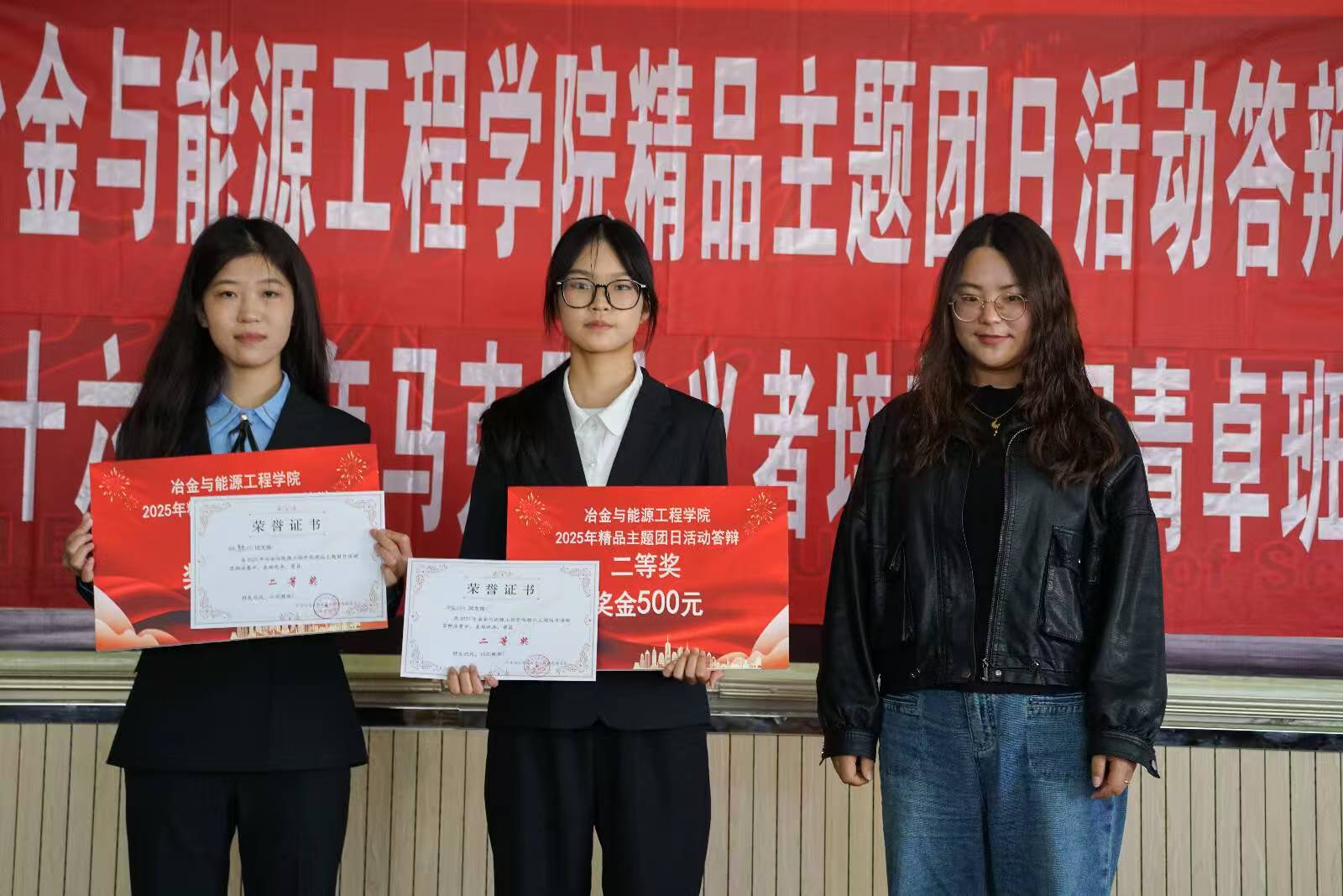 为进一步加强团的基层组织建设,激发团支部活力,更好发挥团支部的战斗堡垒作用,根据《共青团昆明理工大学委员会基层团组织建设深化年实施方案》的安排,2025年11月11日上午,冶金与能源工程学院团委在冶能楼五楼报告厅组织开展院级精品主题团日活动交流展示活动。“青卓班”学员、团支书代表、决赛答辩团支部代表等共160余人参加活动。能动251班班主任张富森、能材251班班主任杨晓萍、辅导员崔庆宇、田杰文担任评委,与团学代表共同见证这场思想碰撞与青春展示的精彩盛宴。