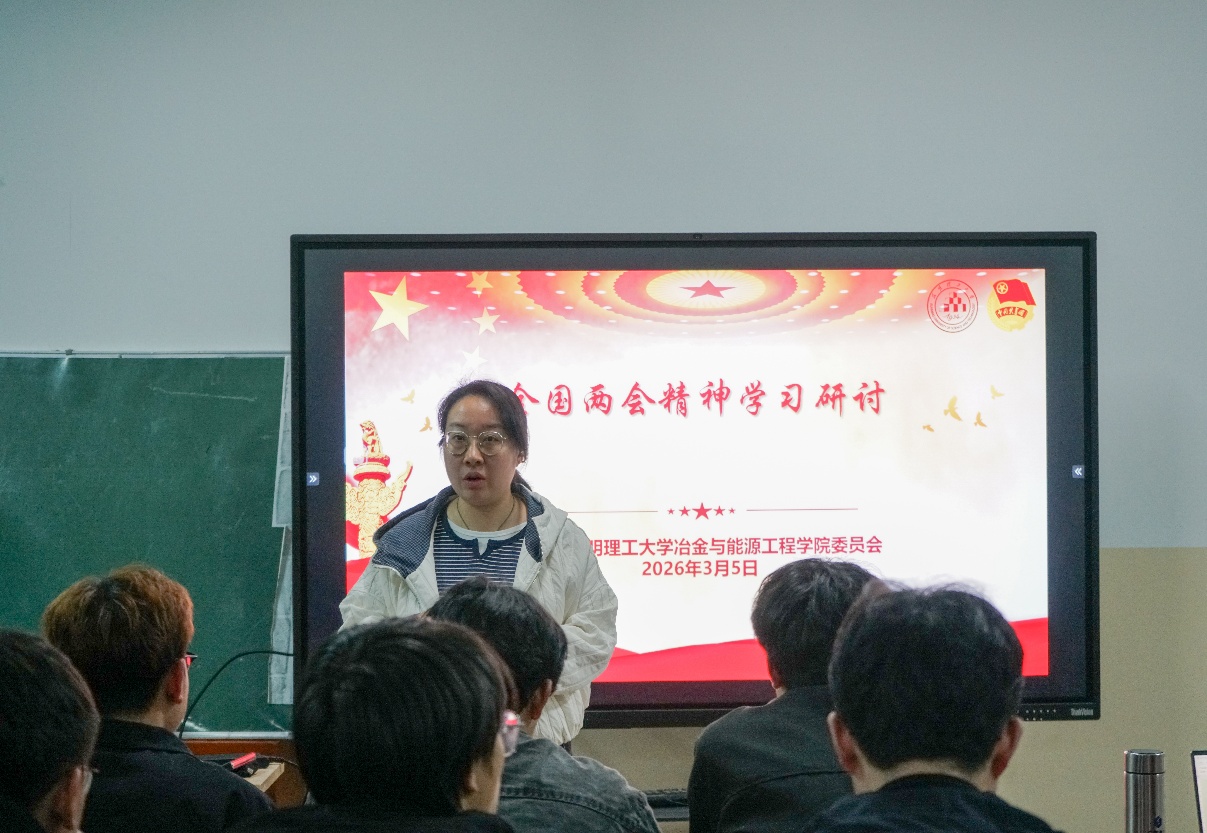 第一阶段,崔庆宇带领全体团学干部观看“学习强国”平台推出的2026年全国两会专题视频,传达两会精神报告会核心内容,引导青年学生深刻领会习近平总书记重要讲话精神和政府工作报告核心要义。在交流研讨环节,大家围绕“如何将专业学习与国家需求相结合”展开热烈讨论。大家一致认为,面对行业转型升级,必须主动拥抱“新质生产力”,在数智治理、生态文明建设等领域下苦功,把论文写在祖国大地上。