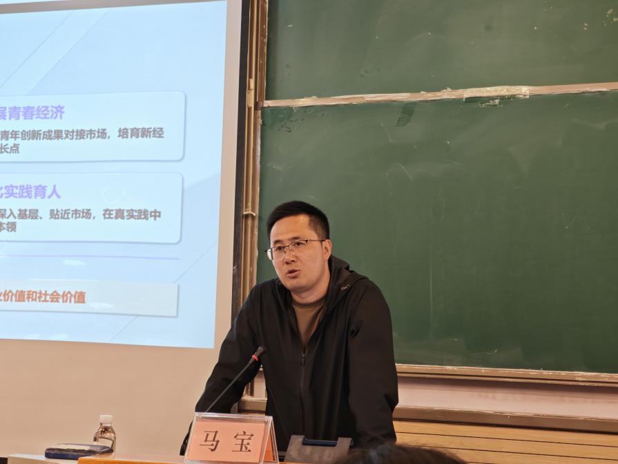 培训中,马宝老师围绕赛事规则、赛道选择、材料撰写等方面进行了系统讲解。他结合往届评审经验,从项目选题、技术呈现、商业模式、社会价值等维度,深入剖析了高质量申报材料的核心要素,并针对团队在备赛过程中遇到的共性问题提出了具体建议。
