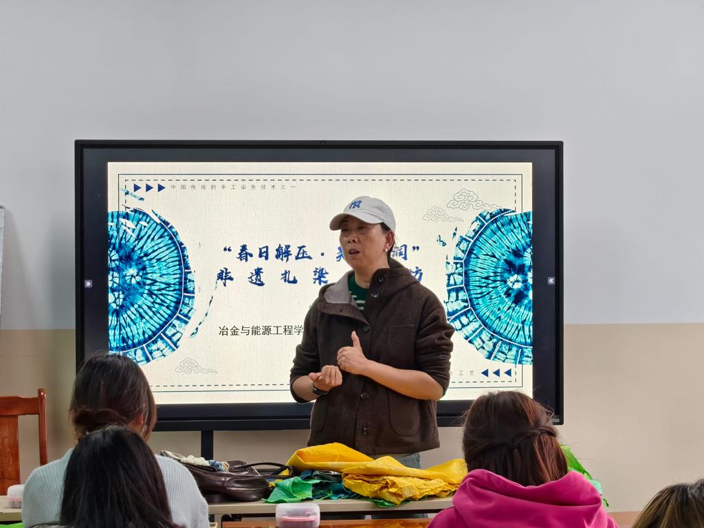 为推动非物质文化遗产传承与校园美育实践深度融合,3月12日至23日,冶金与能源工程学院团委与国土资源工程学院团委联合举办"春日解压·美育浸润"非遗扎染工作坊。活动以"扎染对艺术作品的转化"为主题,连续开展4期,吸引300余名学生踊跃参与,在方寸布料间感受传统技艺的魅力,在一针一线中体悟文化传承的力量。